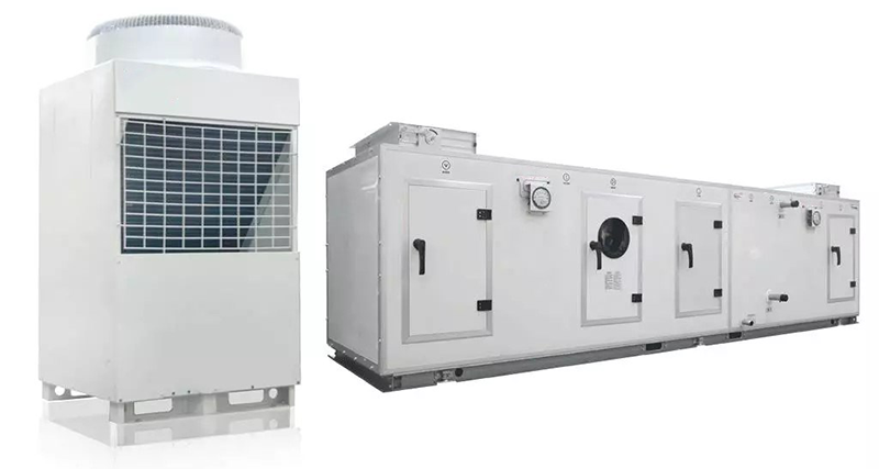 直膨式空氣處理機組主要由空氣處理機組和風冷式壓縮冷凝機組兩大部分組成,兩部分用銅管直接連接,管內走制冷劑,空氣經蒸發器降溫處理后,再經一系列處理后送至室內。該系列產品有恒溫恒濕、冷暖、熱泵等品種,恒溫恒濕型機組能滿足溫濕度要求高的場所,冷暖型機組能滿足舒適性場所,熱泵型機組可一機兩用,節省制熱運行費用,可根據不同使用需求和工況條件定制。并且機組具有電加熱、熱水盤管、蒸汽盤管等加熱方式,
